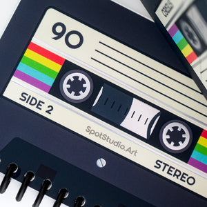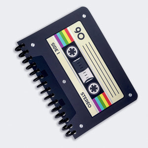 This A6-sized duo (each 4.1" x 5.8") includes two soft coil spiral bound notebooks for double the creativity! Each notebook is packed with 100 unlined pages—perfect for doodles, notes, or secret song lyrics. The double-sided full-color covers shine with raised silver foiled accents, designed to look just like retro cassette tapes.